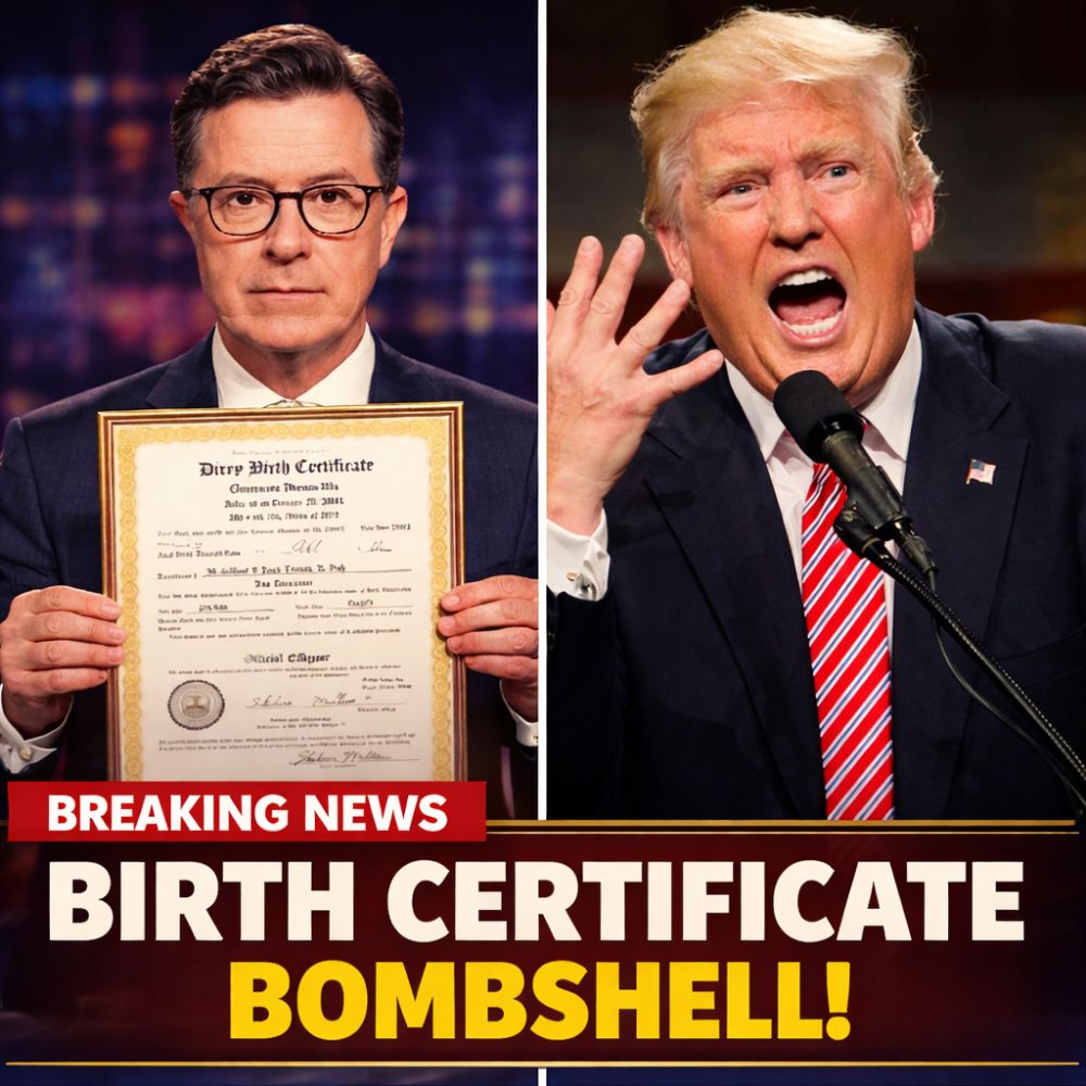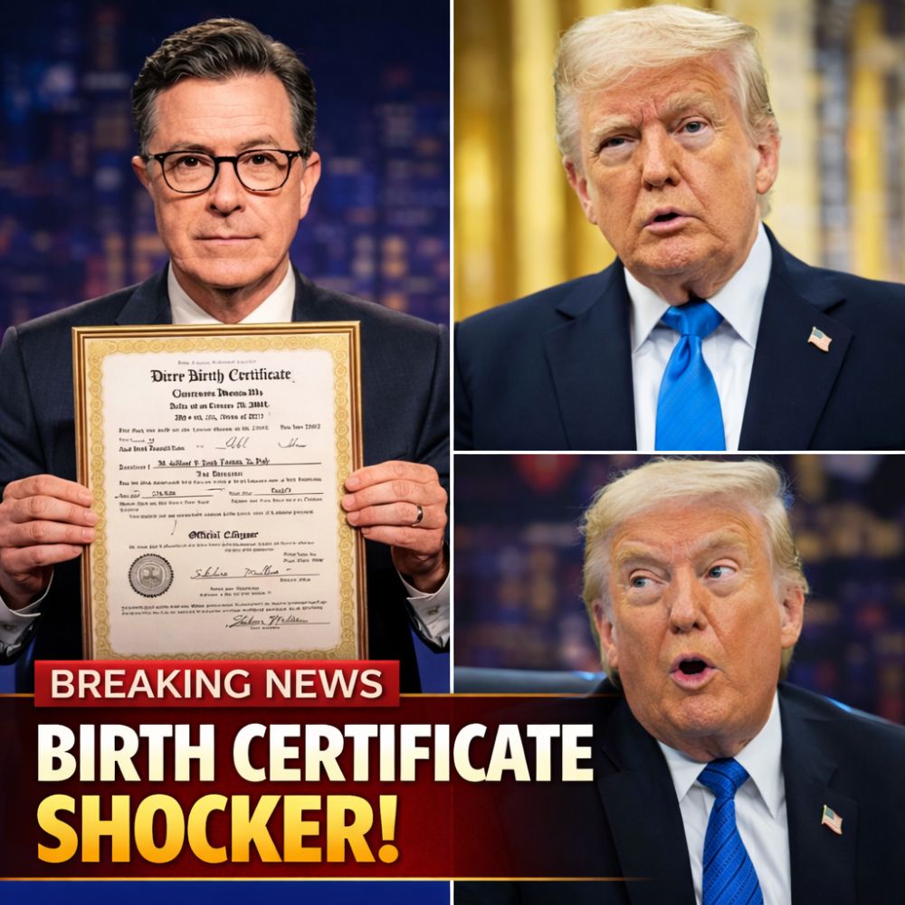The full humiliating late-night segment, Stephen Colbert dropping Fred Trump’s birth certificate, the sudden heavy silence in the room, and the rapidly growing national conversation are going mega-viral right now. Watch before the spin doctors bury it, because this bombshell just delivered the biggest blow to Trump’s image yet. 😂